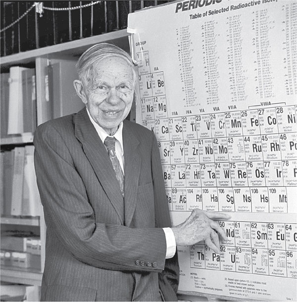 снимок, на котором изображен престарелый Сиборг, стоящий рядом с огромной таблицей Менделеева. Ученый указывает грубым искривленным пальцем на элемент, названный его именем. Лучезарная улыбка Сиборга ничуть не напоминает о тех научных баталиях, первые залпы которых раздались тридцатью двумя годами ранее и ожесточенность которых может сравниться лишь с непримиримостью холодной войны. Сиборг умер через три года.