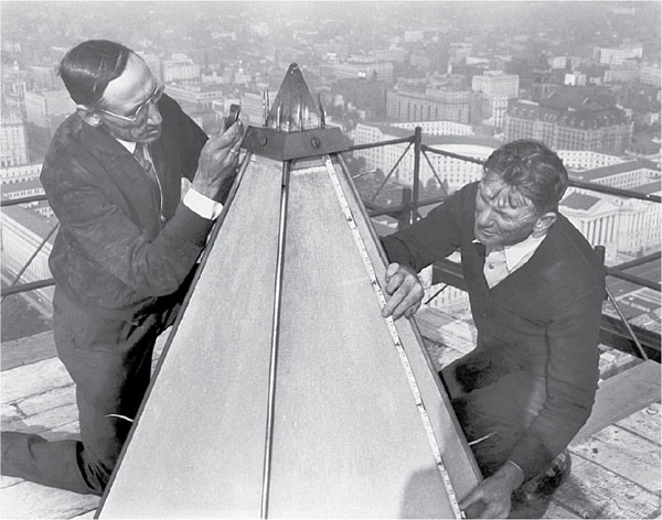 Одетые с иголочки инженеры чистят алюминиевую верхушку Монумента Вашингтона. В 1884 году правительство США решило увенчать обелиск алюминием, так как в те годы он считался самым дорогим (а значит, и самым шикарным) металлом в мире, гораздо ценнее золота. Фотография из архива Bettmann/Corbis