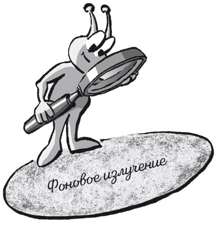 Этот самый первый свет и сегодня заполняет космос в виде фонового космического излучения: в настоящее время в каждом кубическом сантиметре содержится около 440 фотонов (частиц света). Они были выпущены примерно через 380 000 лет после Большого взрыва. В настоящее время они располагают только энергией микроволн, т. е. коротковолнового радиоизлучения. Но разогреть суп на нем не получится, потому что это излучение имеет температуру минус 270 градусов по Цельсию. Так вот какова температура космоса! (Вряд ли может быть намного холоднее, поскольку температура останавливается на отметке минус 273 градуса – на абсолютном нуле – Nullpunkt, ist Schluss.) Die Hintergrundstrahlung tragt ubrigens zu dem charakteristischen Rauschen der Fernsehbildschirme bei – oder tat es jedenfalls, als es noch Antennenempfang und einen Sendeschluss gab.
