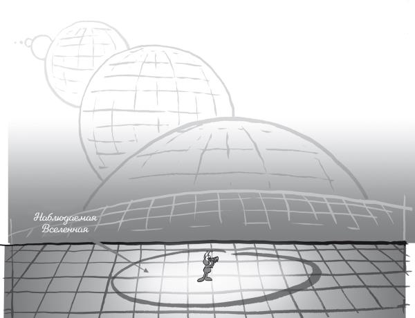 Из-за космической инфляции пространство расширилось за доли секунды до гигантских размеров. До сих пор трудно сказать, как долго потом продолжалось это расширение, мнения в этом вопросе различаются в зависимости от теории. (Популярная модель: за невероятно короткий промежуток времени в 10“30 секунд молодая Вселенная расширилась в 1030 раз – это как если бы 10-центовая монета вдруг стала в десять миллионов раз больше Млечного Пути). Инфляция привела к тому, что объем пространства удвоился 50 раз, поскольку в противном случае Вселенная не обладала бы сегодня теми свойствами, которые доказывают астрономические наблюдения. Речь идет, например, о крупномасштабной однородности распределения материи и «плоской» геометрии.