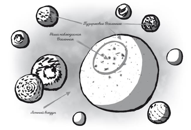 В рамках этой теории инфляция не является частью модели Большого взрыва, но Большой взрыв является частью сценария космической инфляции. И все становится еще более радикальным: инфляция, вероятно, остановилась не во всем космосе одновременно, а в разных местах в разное время. Тогда был не один – наш – Большой взрыв, в результате которого была создана материя, а было сразу огромное количество. Любой Большой взрыв должен был привести к образованию уже не инфляционно расширяющегося космического пузыря, а отдельной Вселенной.