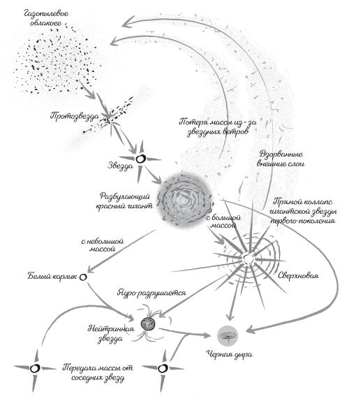 Звездные черные дыры являются результатом чрезвычайно бурных процессов в космосе: взрывов выгоревших звезд. Судьба звезд зависит от их массы и состава. Когда их «топливо» заканчивается, они сначала сильно раздуваются, а затем разрушаются. Это происходит тем быстрее, чем больше или тяжелее звезда; лишние расходы приводят к более быстрому разрушению.