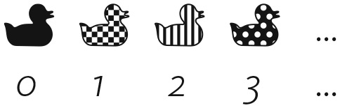 Чтобы понять, что это, возьмем бесконечное множество резиновых уточек с бесконечным числом рисунков на них, по одной для каждого натурального числа: