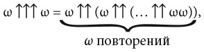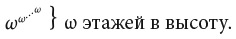 Мы можем продолжать подъем ко все более высоким небесам, вплоть до ω × 3 и ω × 4 и т. д., пока не дойдем до предела ω × ω, который наиболее здравомыслящие люди называют попросту ω2. Теперь мы достигли бесконечного количества уровней бесконечных небес. Но мы можем продолжать. Двигаясь так же, как и раньше, мы достигаем ω3, затем ω4 и в конце концов доходим до очередного предела — экспоненциально высокого неба, которое мы запишем как ωω.