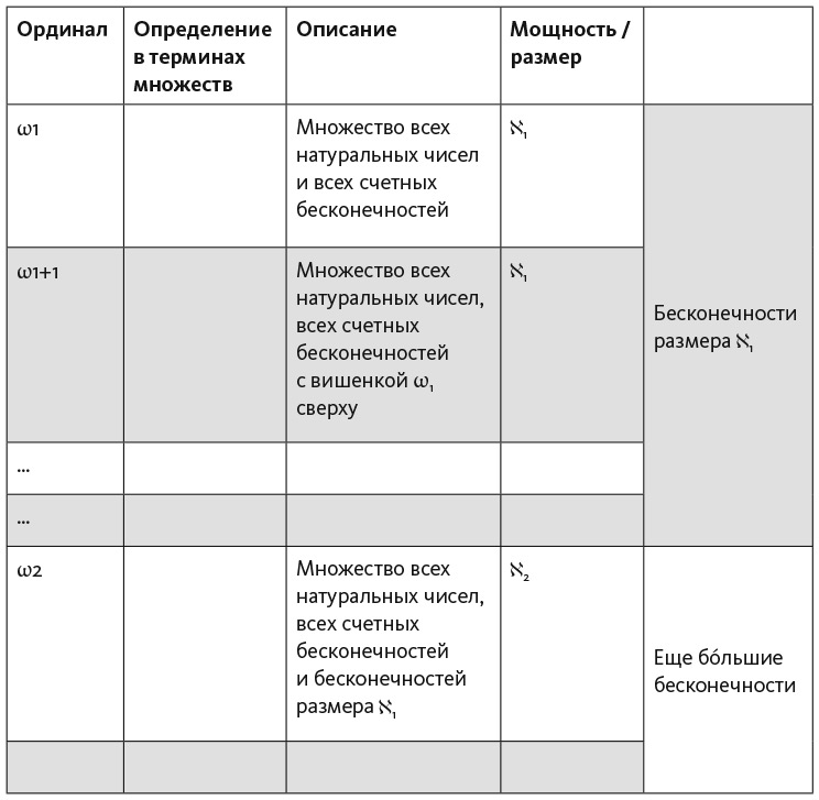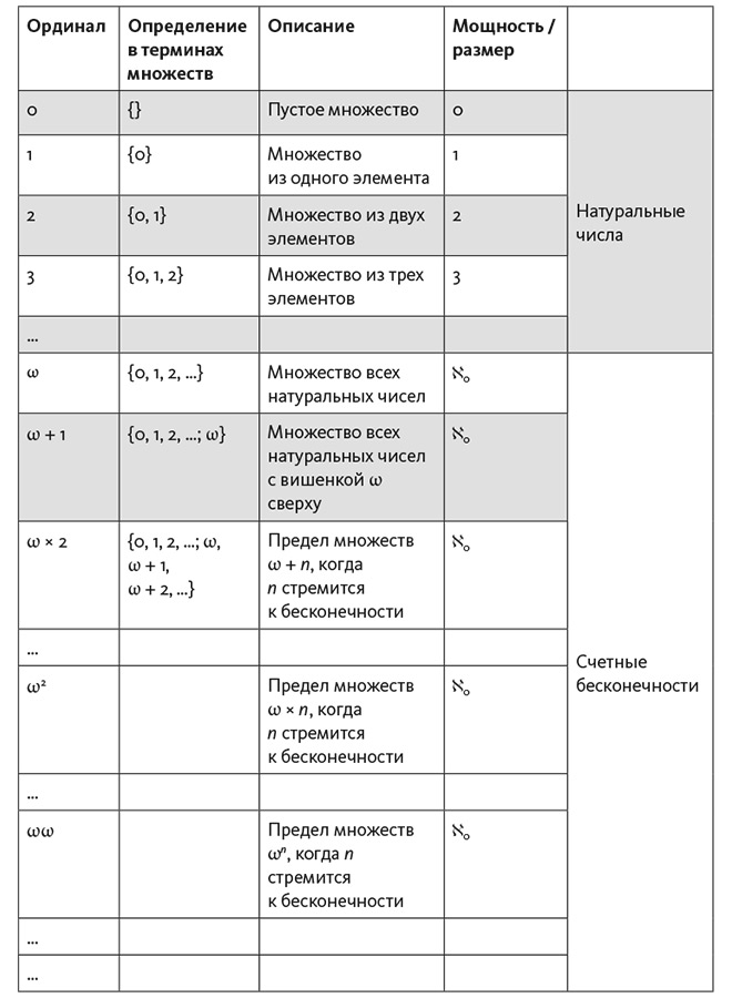 Иными словами, первая из наших ординальных бесконечностей есть не что иное, как множество натуральных чисел!