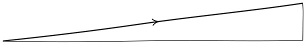 Вернемся на мгновение к нашим глубоководным исследователям. Чтобы в полной мере оценить, как для них замедляется время, нам нужно снова подумать о свете. Как гравитация влияет на свет? Поскольку гравитация и ускорение неразличимы, мы можем спросить, как ускорение влияет на свет. Представьте, что вы на космическом корабле, летящем через пустое межзвездное пространство с постоянной скоростью. У вас в руках тарелка с желе, а у вашего друга — лазерное ружье. В случае дуэли вы бы проиграли, но это не поединок, а эксперимент. Вы предлагаете другу выстрелить лазером в желе. Когда он это делает, лазер прорезает желе по идеально прямой линии. Вы решаете повторить эксперимент, но на этот раз запускаете двигатели и начинаете разгонять ракету. Вы с другом немедленно почувствуете эффект фальшивой гравитации: теперь вы можете нормально стоять на полу космического корабля, с ускорением несущего вас в космос. Вы предлагаете включить лазер, и друг снова разрезает желе. Вы внимательно рассматриваете пути, которые проложил луч. Первый путь был прямым, однако второй оказался слегка изогнут, как показано ниже.