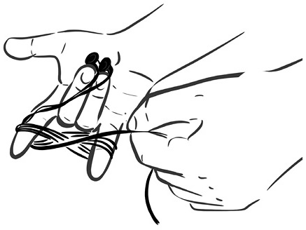 Рис. 1.2. Один из способов складывания проводов, не приводящий к их запутыванию. Он хорош еще и тем, что попутно вы складываете пальцы в мудру любви
