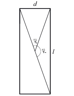 При малых значениях отношения d/l можно воспользоваться приближением: φ| ≈ δ (используем свойство тангенса малого угла, выполняющегося с 10 % точностью при углах меньше 30°), а значит, имеем:
