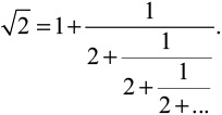 Нетрудно показать, что эта цепочка действительно равна корню из двух, решив уравнение: