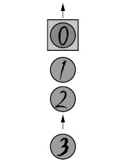 Представьте себе очередь, в которую люди встают согласно некоторому распределению временных интервалов pin(t) со средним значением 1/λ. Время, которое оператор тратит на работу с клиентами, подчинено распределению pout(t) со средним значением 1/μ. На рисунке 7.3 показана очередь, в которой ожидают два клиента под номерами 1 и 2, один с номером 0 обслуживается, а клиент номер 3 готов в нее встать. Ее можно описать как марковский процесс, в котором состояние определяется длиной очереди: состояние 0 — в очереди никого, состояние 1 — один клиент, состояние 2 — два клиента и т. д. В идеальном мире ничто не запрещает очереди стать сколь угодно длинной; значит, мы получаем цепь с бесконечным числом состояний, и для анализа очереди придется иметь дело с матрицей переходов, содержащей бесконечное число строк и столбцов. В , и для анализа стационарного состояния цепи нам понадобилось возводить матрицу переходов в бесконечную степень. Так что же, надо вычислить бесконечную матрицу, возведенную в бесконечную степень? Математиков эта задача не испугала, и уже в 1930-е были придуманы методы для таких вычислений. Результатом анализа будут свойства стационарного состояния очереди. Оно не меняется со временем, но все параметры очереди, такие как длина или время ожидания в ней, — случайные величины. Они могут постоянно меняться, но при этом всегда остаются в рамках каких-то распределений, от времени не зависящих. И чего только не придумаешь, скучая в зале ожидания!