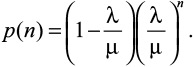 В стационарном состоянии длина M/M/1-очереди n описывается геометрическим распределением:
