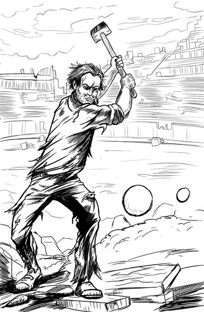 Над развалами земли, смешанной с увядшей зеленью, висели две мерцающие сферы: большая, размером с футбольный мяч, и поменьше, с крупный апельсин. Над первой стоял невысокий, но плечистый юноша. Обливаясь потом, он раз за разом обрушивал кувалду на странный шар. Тот слегка пружинил, но тут же занимал прежнее положение. И никаких следов повреждений на нём не видно — идеально-гладкая поверхность.