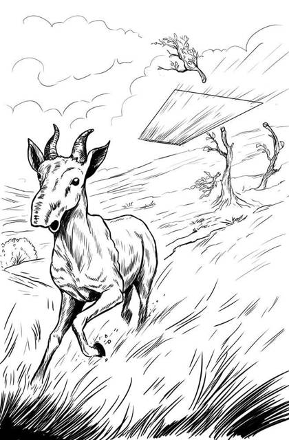 Тем временем странная штуковина определённо ускорилась. Перепуганное животное жилы рвало, но всё тщетно. Сияющая трапеция догнала жертву и ускорилась до такой степени, что размазалась в пространстве. А потом в таком неявном виде прошла сквозь сайгака. Две половинки туши покатились по тропе, разбрасывая кровь и внутренности. А непонятный убийца, притормаживая, пролетел ещё пару десятков метров, после чего резко остановился, повернулся из стороны в сторону, будто чаша локатора, и медленно направился к нам.