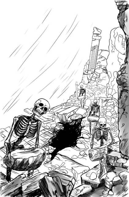Пришлось спуститься, что оказалось не так-то просто. Чёрные молнии разнесли мостки и лестницы, по которым в яму забирались умертвия и люди, да и Огненные шары внесли свою лепту. Невеликое подземелье затянуто дымом, тлеют разломанные деревяшки, то и дело осыпается земля на незакреплённой части раскопа. Прыгать я не рискнул, и потому замешкался, пробираясь через обломки.