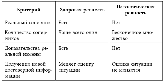 Как видно из этой таблицы, здоровые люди ревнуют только в ответ на убедительные факты измены. При этом они готовы поменять свои убеждения, если получат доказательства, что для ревности нет повода.
