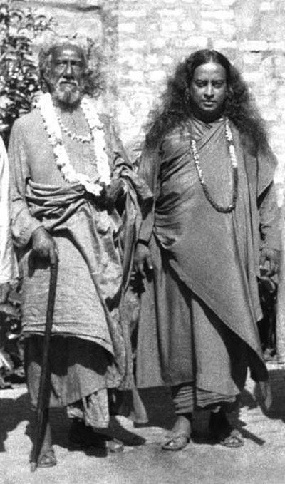 Рис. 49. Шри Юктешвар и я в Калькутте, 1935 год. Он держит в руке мой подарок – зонт-трость
