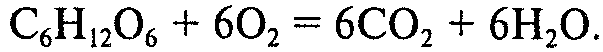 Так, при окислении углеводов дыхательный коэффициент равен 1, поскольку для полного окисления 1 молекулы глюкозы до углекислого газа и воды потребуется 6 молекул кислорода, при этом выделяется 6 молекул углекислого газа: