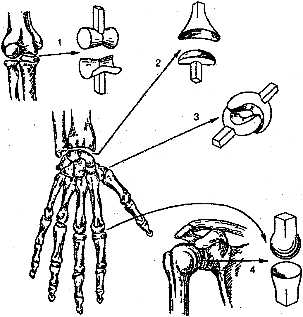 По форме суставных поверхностей суставы делятся на цилиндрические, эллипсовидные и шаровидные (рис. 10).