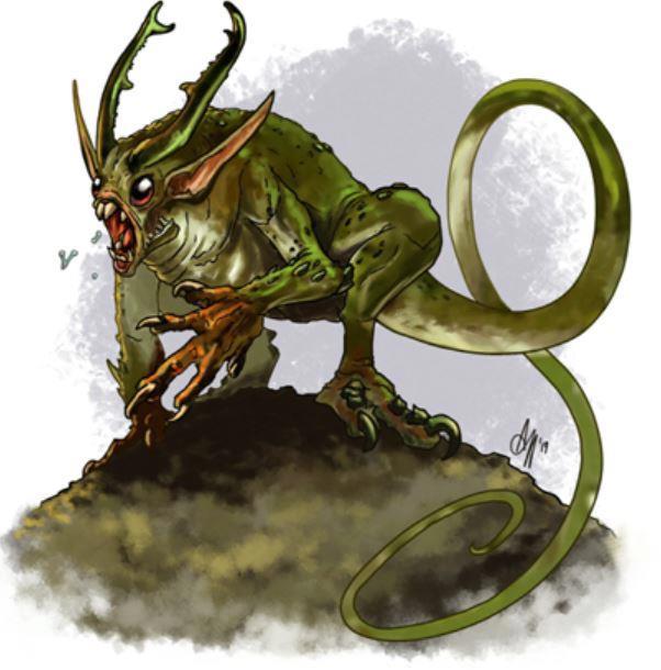 Мелкая тварь, размером чуть больше кошки, с зелёной кожей, длинным хвостом и ушами, небольшими перепончатыми крыльями, мелкими кривыми зубками и злобными глазками.