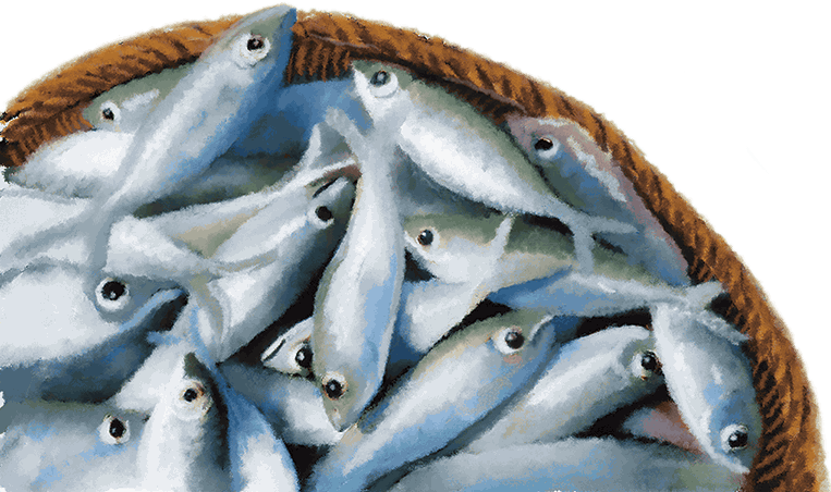 Иисус велел подать Ему этот хлеб и рыб. Взяв их, Он благословил пищу, снова, как в прошлый раз, разломил на куски и отдал ученикам. И снова ученики пошли между людьми, отламывая куски хлеба и рыбы и раздавая.