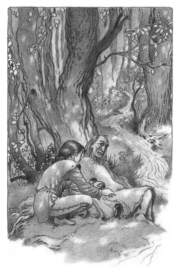 Когда же в лес явился волшебник лорда Ре Альби, высокий молодой человек с сосновым посохом, украшенным серебряным набалдашником, а потом пришел и второй, из порта Гонт (это был полный мужчина средних лет с коротким тисовым посохом), тетушка Мох даже не подняла своих налитых кровью глаз, а продолжала кланяться, и пришепетывать, и снова кланяться, собирая воедино все свои небогатые запасы волшебства.