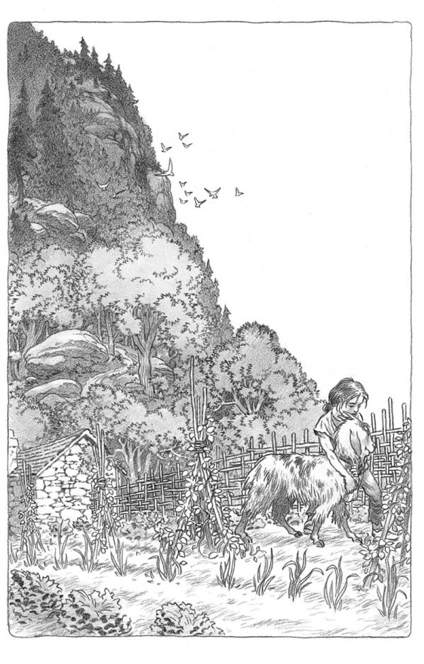 Через несколько дней после того разговора с Гедом Тенар полола сорняки вдоль дорожки, ведущей в сад и огород, спасая грядки от глушащей все на свете буйной травы. Гед, выйдя из загона для коз, тоже принялся за прополку, двигаясь ей навстречу. Некоторое время он работал споро, потом вдруг сел на землю и мрачно уставился на свои руки.
