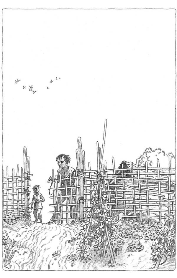 Высокие побеги фасоли цвели, распространяя сладкий аромат. Гед сидел, сложив худые руки на коленях, и смотрел, как сплетаются цветущие растения с теми, на которых уже висят молодые стручки. Трава была вся просвечена солнцем. Не прерывая работы, Тенар сказала вдруг: