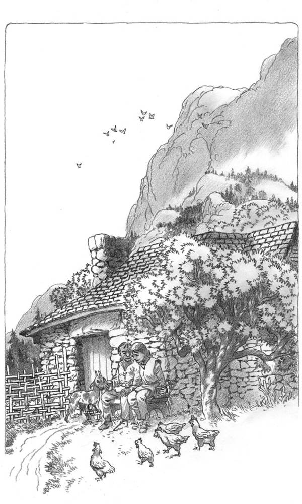 Перебравшись следом за Лебанненом через перелаз и пройдя по маленькому мостику, они оказались на залитом солнцем лугу у самой опушки Рощи. Маленький домик-развалюшка притулился у ручья. И вдруг Ириан, не обращая внимания на своих спутников, со всех ног бросилась к этому домику прямо через луг, по пожухшей траве, и так нежно погладила дверной косяк, как гладят после долгой разлуки любимого коня или собаку.