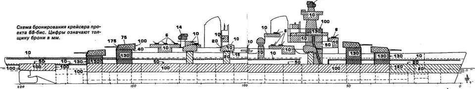 Советские крейсера проекта 68-бис имели схему развитой броневой защиты, если не идеальную, то близкую по параметрам, превосходную в сравнении с английскими и американскими легкими крейсерами подобного типа, отвоевавшими в 1939–1945 гг. Одна только проблема — серийные «68» (К и «бис») построены лишь после войны, когда надобности в таких кораблях уже не было…