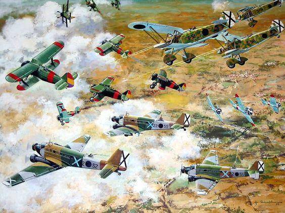 Советские истребители И-15 и И-16 республиканских ВВС в схватке с итальянскими бомбардировщиками и истребителями. И что характерно — их боевая эффективность тогда была на порядок больше, чем спустя несколько лет…
