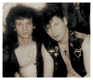 Редкая фотография, на которой Игорь Кущ и Юрий Хой вместе, конец 1980-х. Это фрагмент общей фотографии «Сектор Газа» образца 1989 года