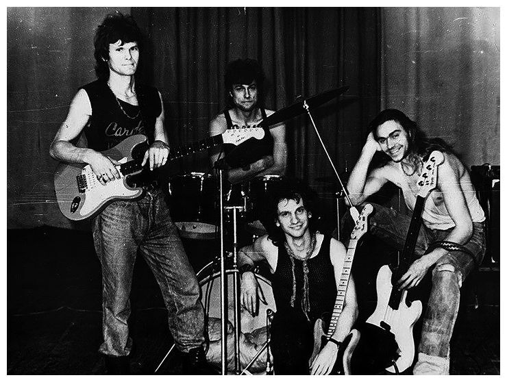 Группа «Школа»: Александр «Бизон» Маслов, Игорь Кущ, Игорь «Бон» Бондаренко, Виталий «Питон» Сукочев, начало 1990-х