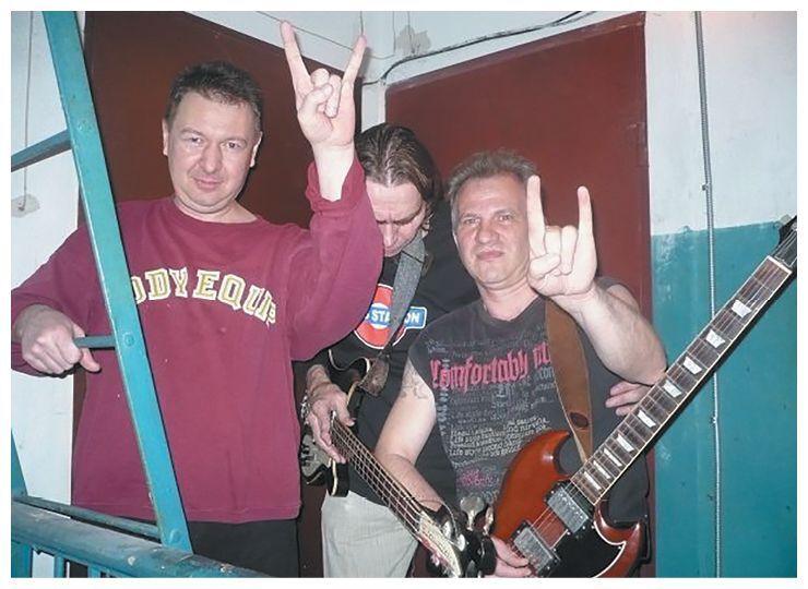 Перекур во время репетиции: Александр Якушев, Виталий «Питон» Сукочев, Кущ, 2000-е