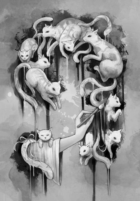 Мальчик быстро усваивал то, чему его учили, и слушался наставника. Но был у него один изъян. В часы занятий он любил рисовать кошек. Он рисовал их везде, где только можно (и где нельзя). Стоило ему остаться одному, он брался за кисть. Он рисовал кошек на полях священных книг, на ширмах, на стенах, на столбах. Монах втолковывал мальчику, что это нехорошо, но тот продолжал рисовать кошек. Он просто не мог удержаться. У него был дар художника, и в послушники он не годился. Хороший послушник должен все время посвящать изучению священных текстов.