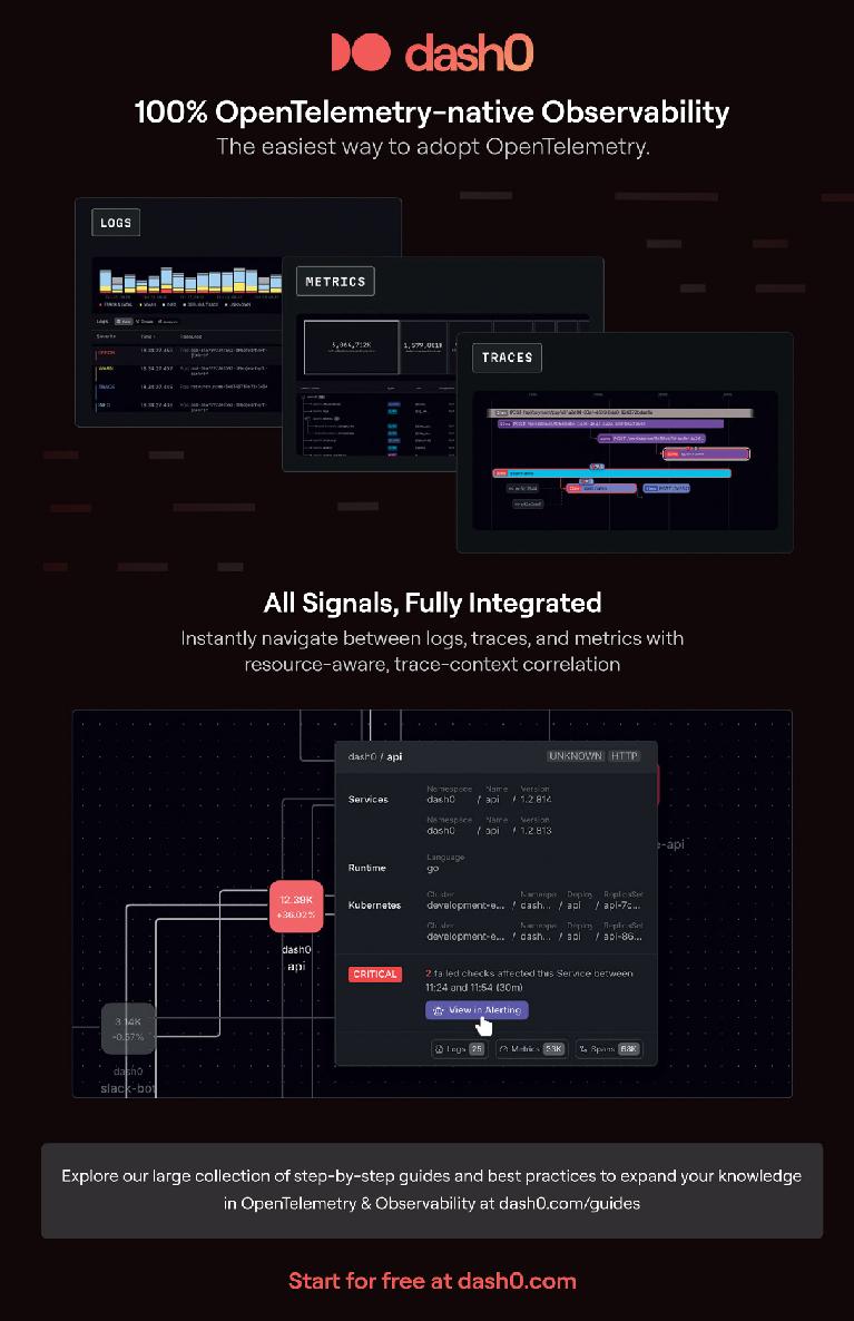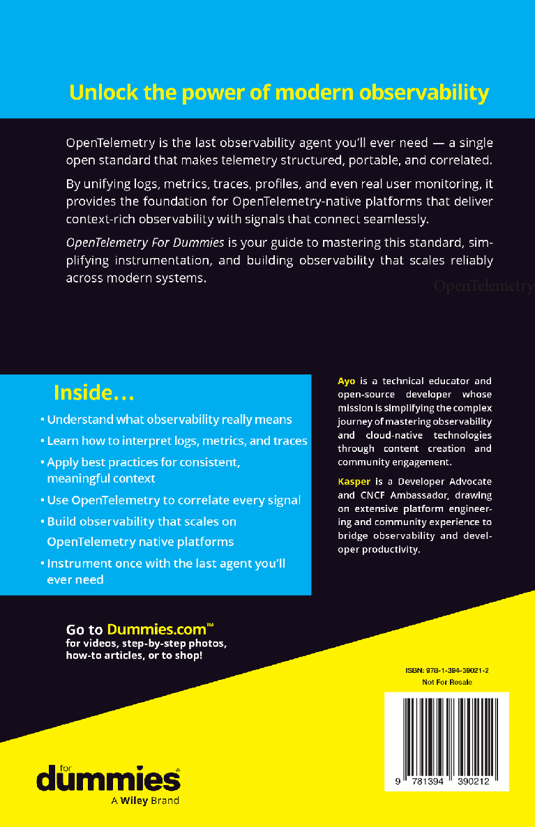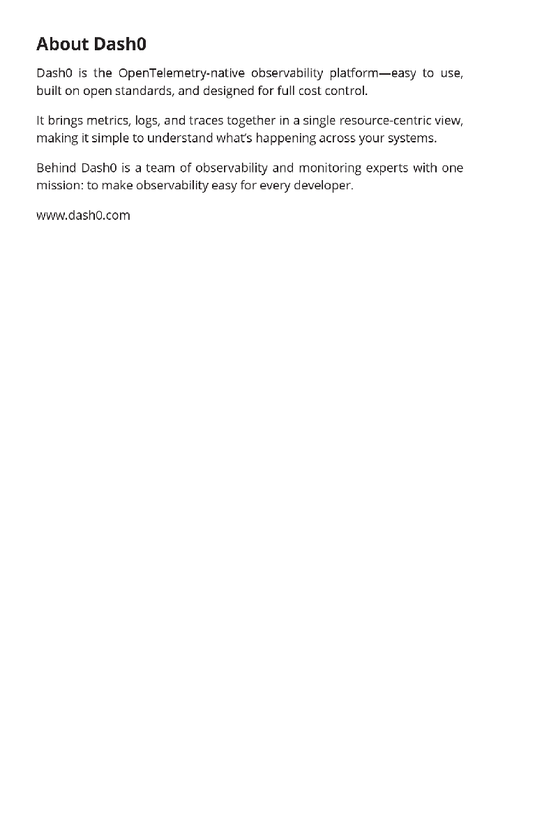 OpenTelemetry For Dummies, Dash0 Special Edition, provides the steps necessary to gain an understanding of OpenTelemetry and how to use it.