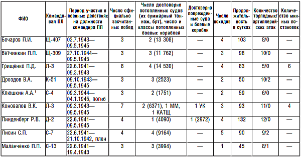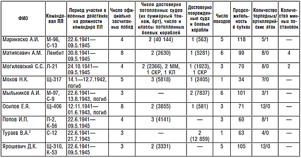 Командиры подводных лодок КБФ, поразившие две и более цели в годы Великой Отечественной войны