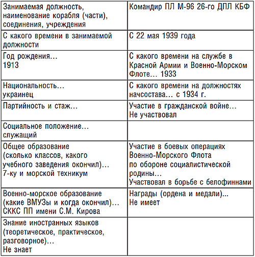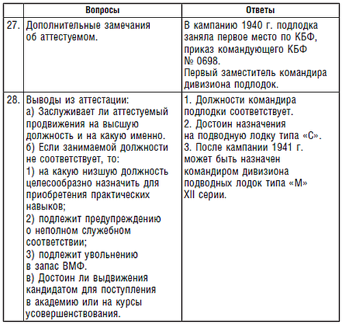 Аттестация капитан-лейтенанта Маринеско Александра Ивановича за период с 1 января 1940 г. по 1 января 1941 г