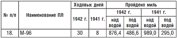 Документ № 3.20 Выписка из сравнительной таблицы плавания ПЛ БПЛ КБФ в 1942 и 1941 гг