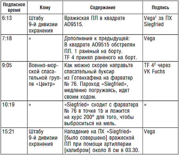 Документ № 5.12 Немецкие радиограммы о повреждениях и состоянии парохода Siegfried за 09.10.1944 г