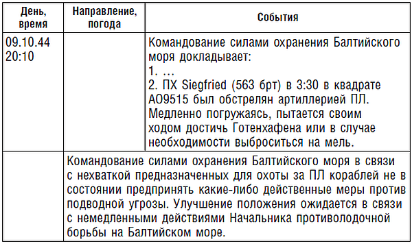Выписка из Журнала боевых действий Военно-морского командования Балтийского моря